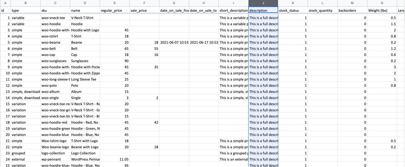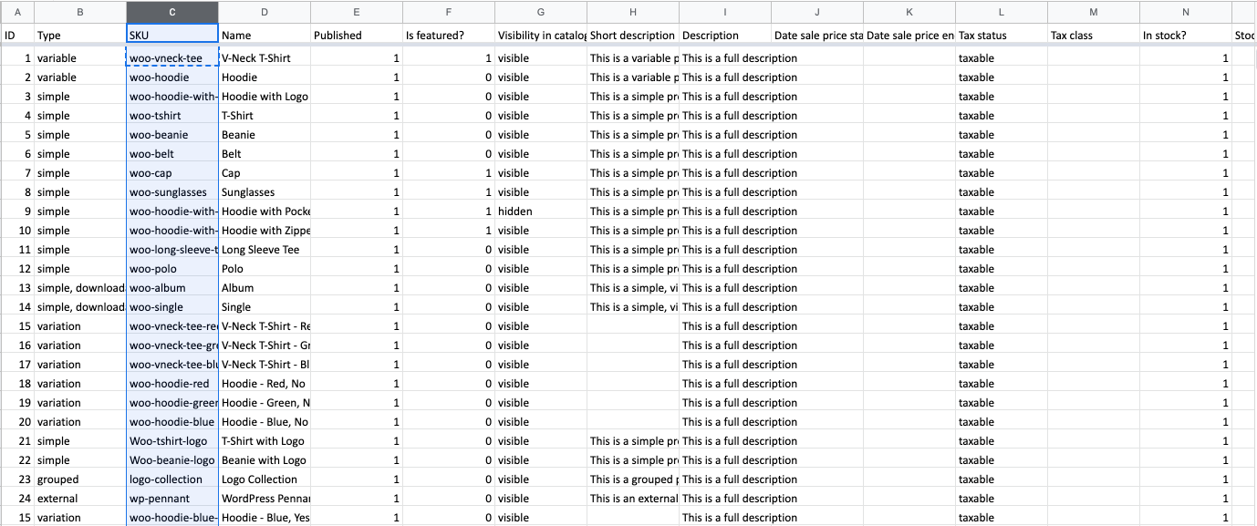 - Variable – a product with variations, each of which may have a different SKU, price, stock option, etc. For example, a t-shirt available in different colors and/or sizes.