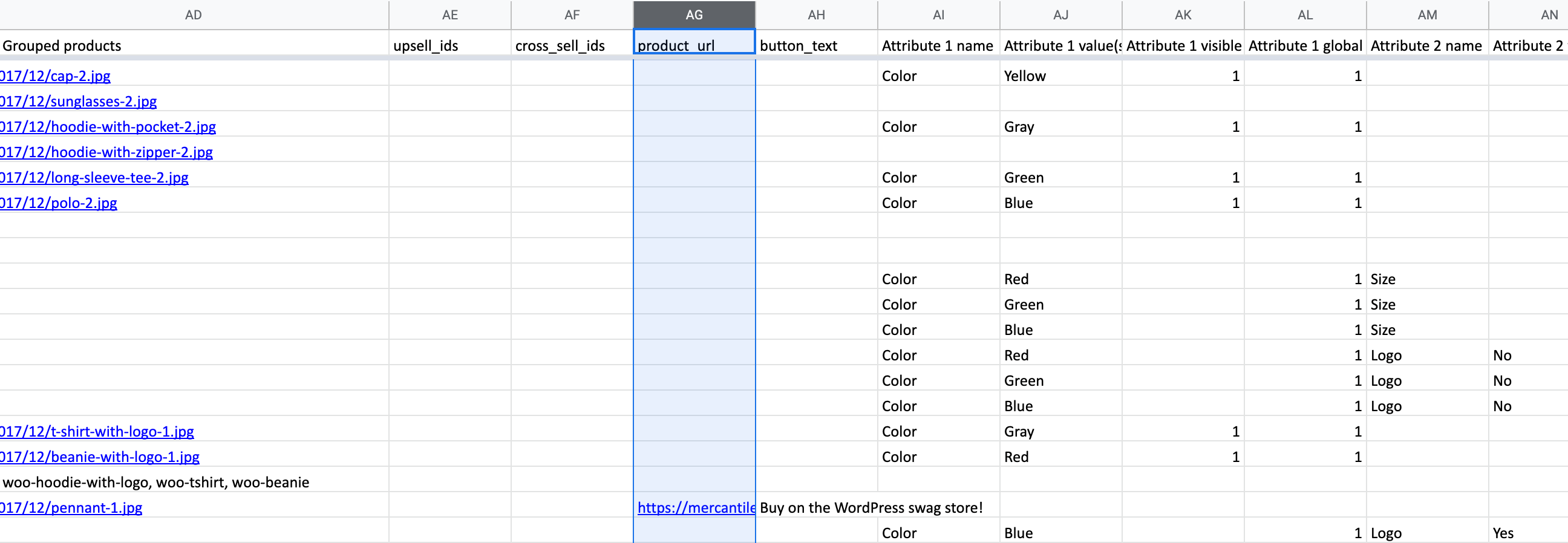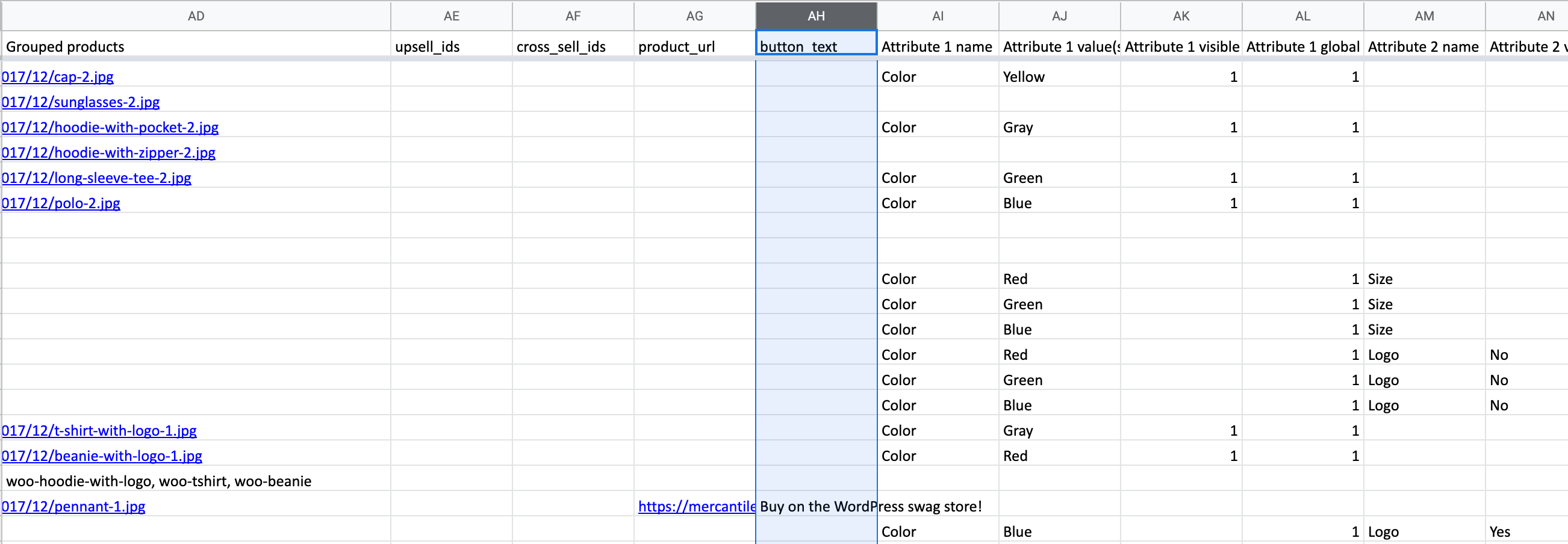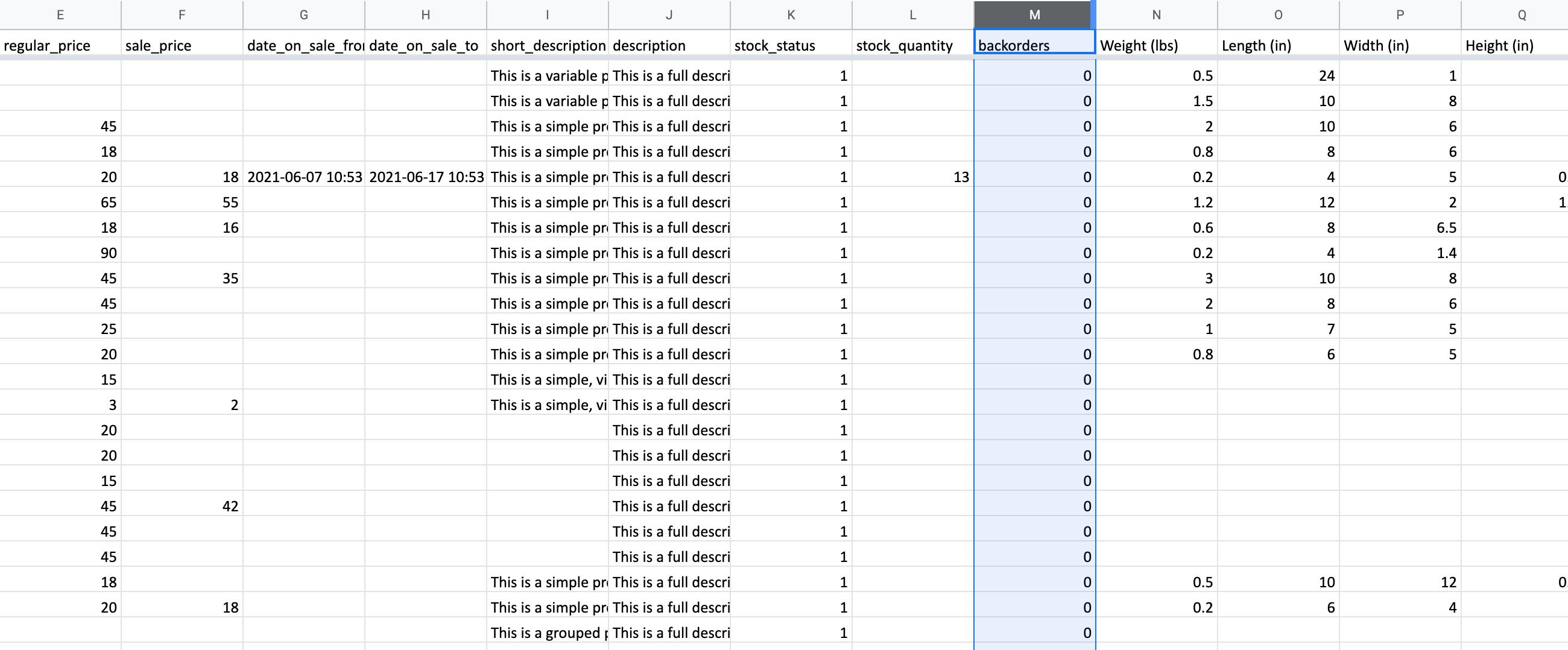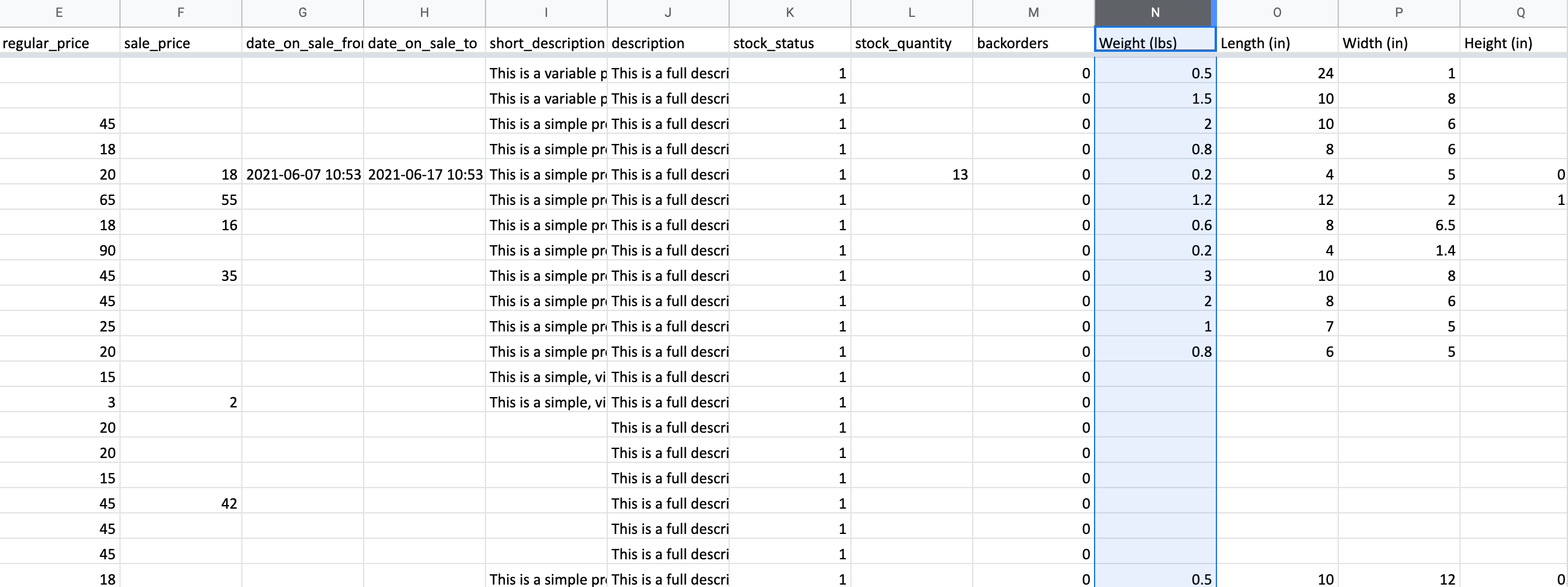 The attribute value of the variable. The attribute value number must match the corresponding attribute name. For example if ‘Attribute 1 name’ is for colors, then ‘Attribute 1 value(s)’ should have color values. If you want to add a second attribute for size you would need to create a second column titled ‘Attribute 2 name’ and a corresponding ‘Attribute 2 value(s)’.