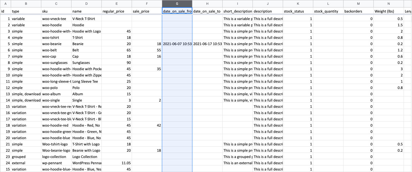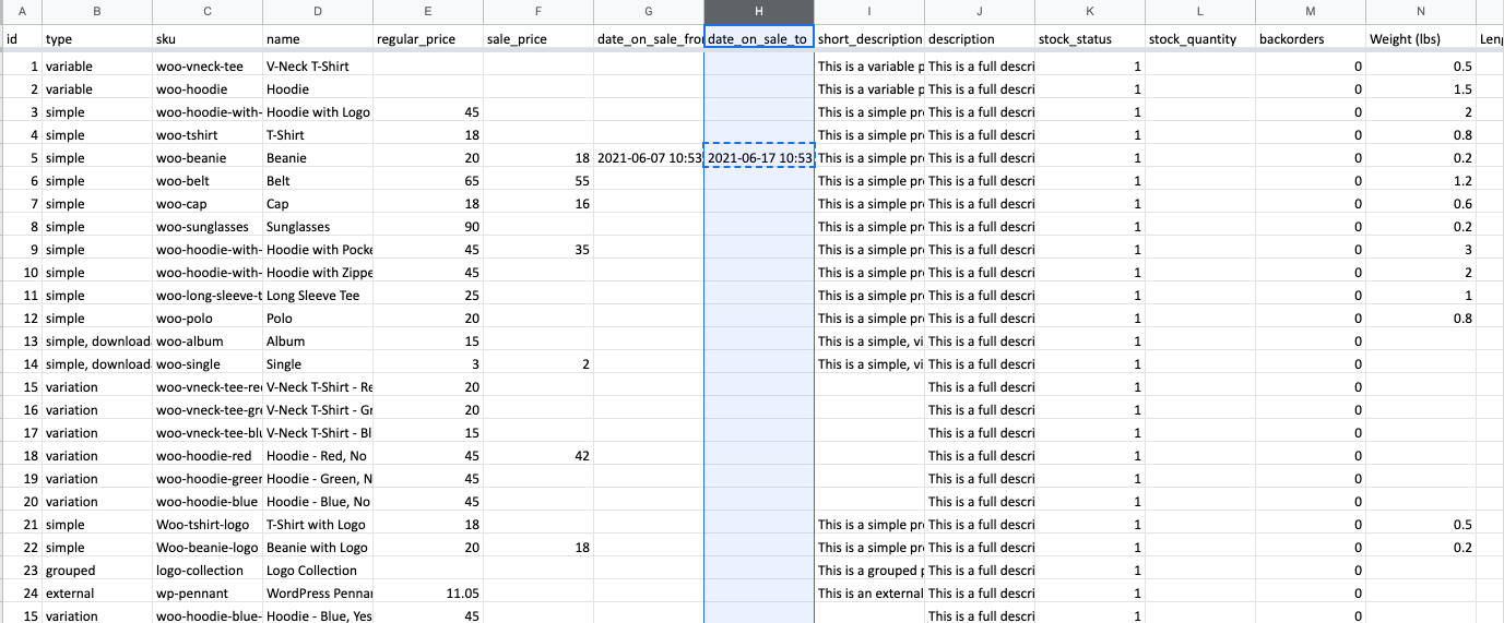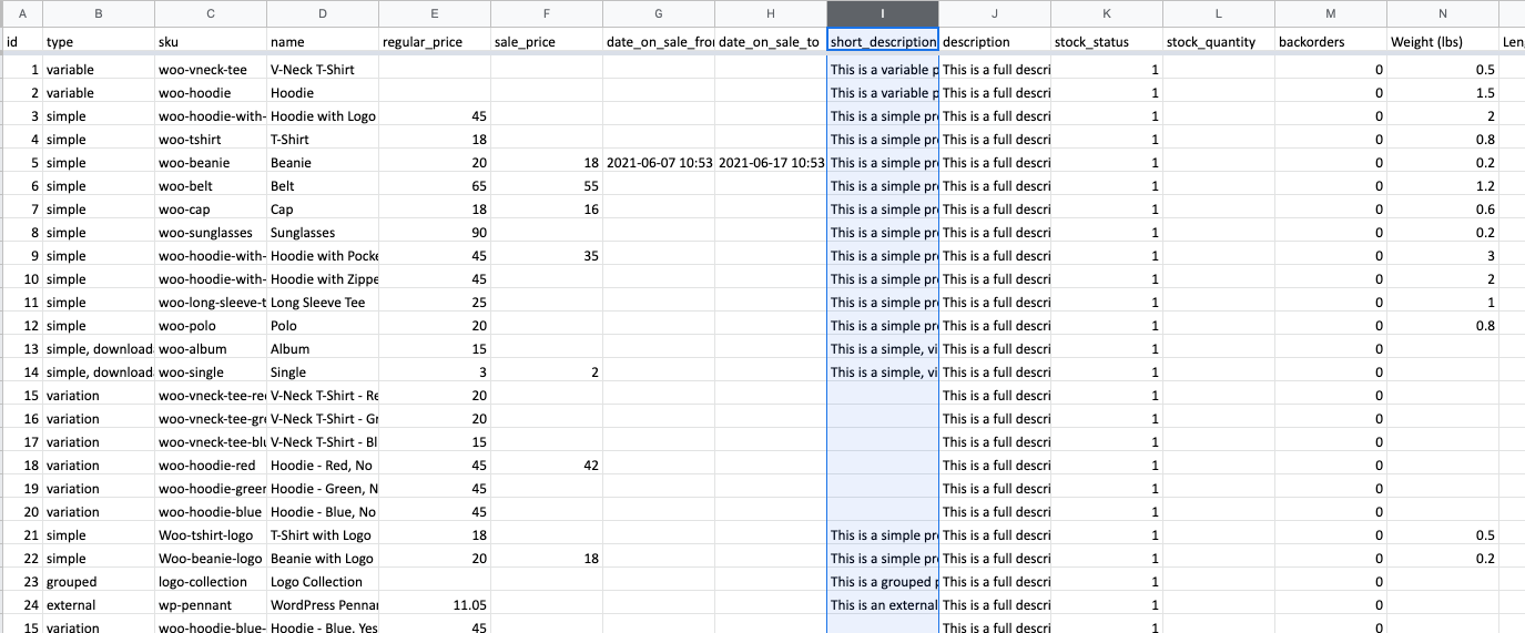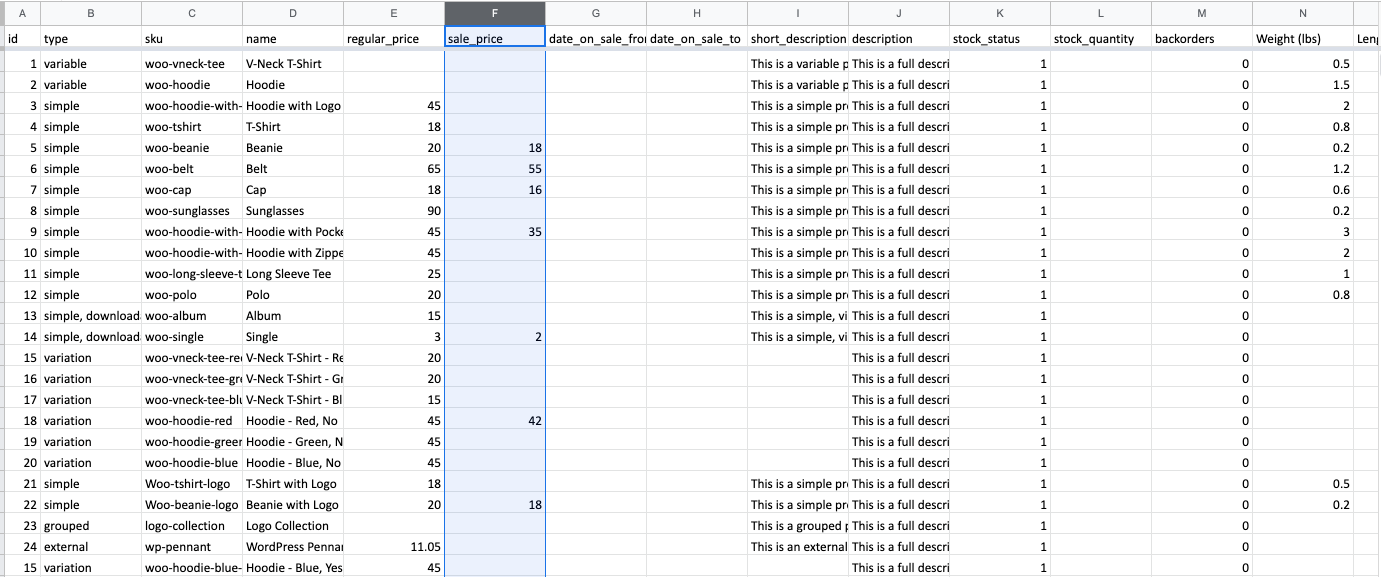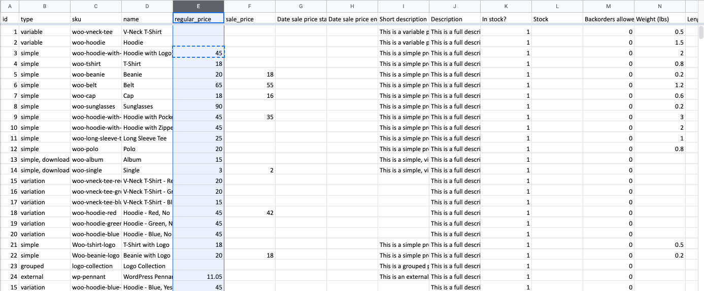 The attribute value of the variable. The attribute value number must match the corresponding attribute name. For example if ‘Attribute 1 name’ is for colors, then ‘Attribute 1 value(s)’ should have color values. If you want to add a second attribute for size you would need to create a second column titled ‘Attribute 2 name’ and a corresponding ‘Attribute 2 value(s)’.