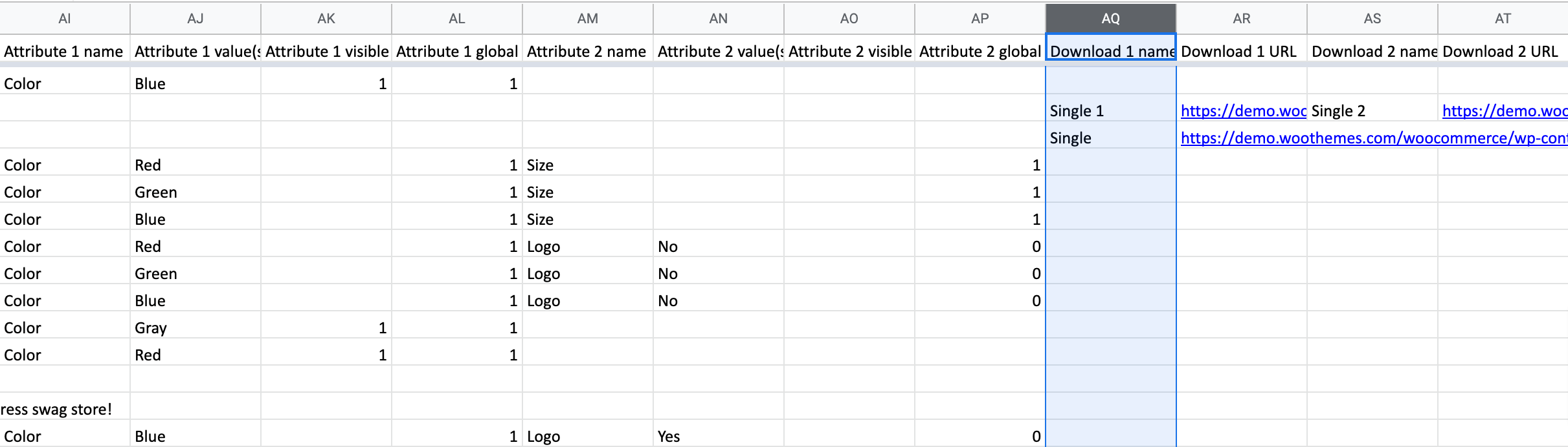 The file URL of the downloadable product. The download URL value number must match the corresponding download name. For example if ‘Download 1 name’ has the name Single then ‘Download 1 URL’ should have the corresponding file URL. If you want to add a second download for the file name Single 1 you would need to create a second column titled ‘Download 2 name’ and a corresponding ‘Download 2 URL’.