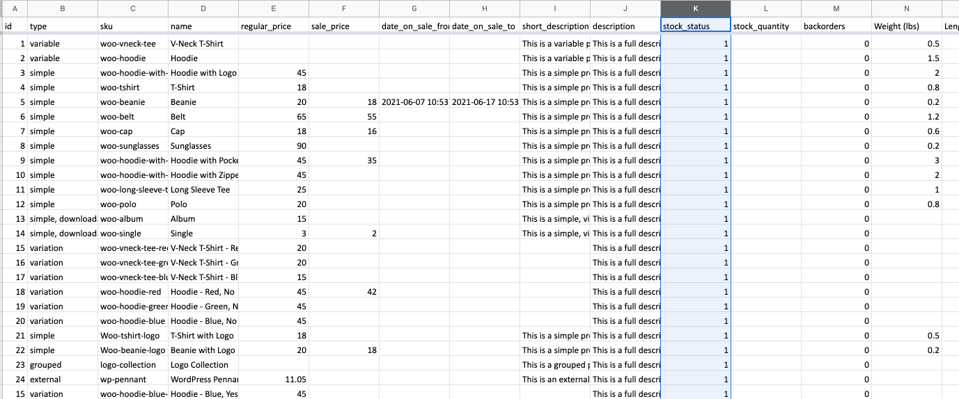 Valid values: simple, variable, grouped, external, variation, virtual, downloadable. Multiple types can be used comma separated.