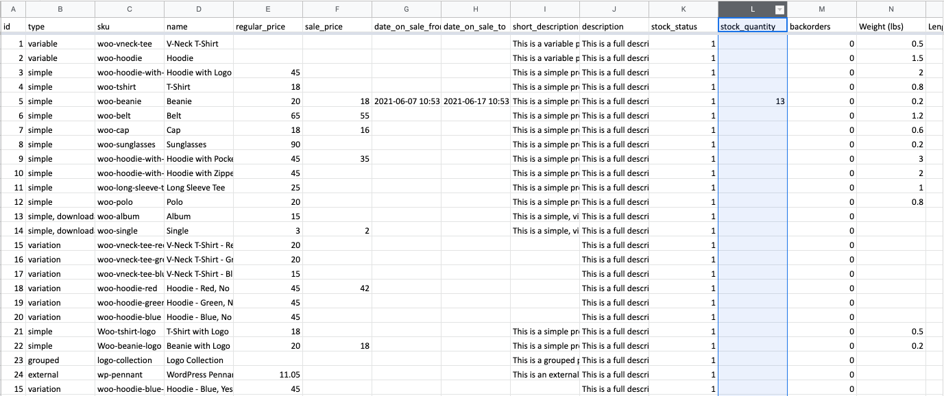 The numeric stock number for stock management, parent can be used for variations. Blank = no stock management.
